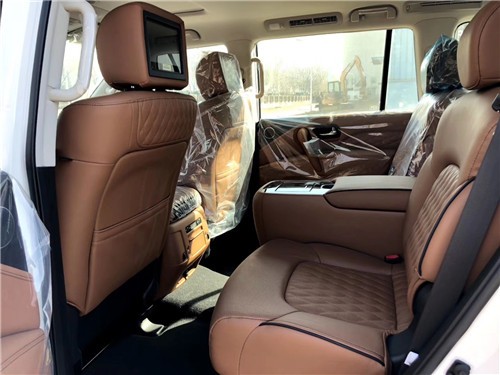 19款英菲尼迪QX80 高配版 配置:5.6排量v8 398马力 7速 全时四驱 拖车模式 雪地模式 多功能方向盘 一键启动 无钥匙进入 真皮内饰 真皮座椅 主驾座椅记忆 主副8项电动座椅 腰部支撑 触摸大屏 自动空调 钟表 座椅加热 天窗 自动防炫目后视镜 桃木内饰 电动尾门 冰箱 后排自动空调 后娱 第三排座椅电动收放 隐藏脱钩 前后电眼8个 led大灯 led日行灯 自动大灯 22轮 环影 胎压 8气囊 定速巡航 行李架 方向盘电动调节 bose音响 座椅排列2+2+3 高配ProACTIVE包 包含以下配置: 半苯胺真皮座椅 桃木方向盘 前排座椅通风 第二排座椅电动折叠 15个扬声器bose音响 流媒体后视镜 自适应巡航 车道保持 前碰撞预警 智能刹车辅助 倒车碰撞预防 盲区警示及侧碰修。