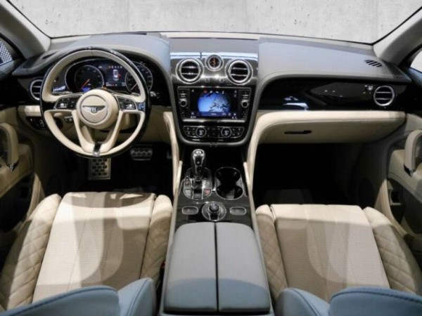 2019款宾利添越 (配置|询价)内部设计沿袭了传统的豪华风格,全新的三辐式方向盘、大尺寸液晶显示屏和全新的电子换挡杆也为新车增提了一丝科技感。新车内饰整体采用真皮进行包裹,并辅以木纹饰板和部分镀铬装饰件进行搭配,视觉效果彰显奢华。