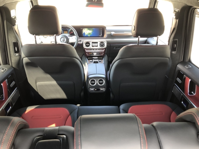 2019款奔驰G500内饰豪华气派,卓越的品质和精致的工艺在车内体现得淋漓尽致,对细节的精益求精是内饰设计中的重要原则。车内采用深色调与桃木装饰,黑色真皮运动座椅非常舒适,方向盘以高档真皮包裹装饰,触感极其细腻。配有桃木装饰的操控台,稳重大气,同时提高了整体的质感。各种功能按钮应有尽有,丝毫不次于豪华轿车的功能。 内饰焕然一新,虽然还是以平直的线条为主,但完全没 了上一代车型那种粗糙的感觉了,用料和做工都能令人满意。跟奔驰的很多其他车型一样,它也用上了双12.3英寸屏幕,科技感很强。三把差速锁按键依旧布置在中控台的正中间,这是奔驰G级的灵魂所在。19款奔驰G500经过全新改款中控大屏和仪表部分也采用了科技感满满的双12.3寸巨幕,空调出风口也改为重新设计的炮筒式,豪华感和科技感大大提升。