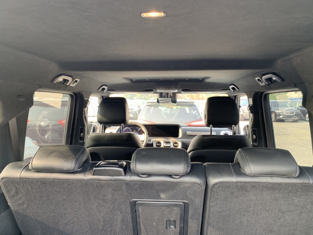 全新奔驰G63后排的腿部空间,相比之前车型得到了非常明显的提升。另外前后座椅的触感与舒适性以及后排座椅的倾斜程度均进行了升级,在配上标配的64色氛围灯,让这辆全新G63可以在长途旅行中提供更为舒适惬意的环境。