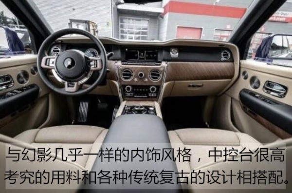 20款劳斯莱斯库里南内饰风格自然不用多说,大面积皮革和实木饰板搭配的中控台,辅以银色装饰条搭配,游艇式方向盘造型同样适用皮革与木饰板相搭配。全新的全液晶仪表盘采用三圆仪表设计,辅以虚拟表盘和指针,适用现代科技完成复古风格。