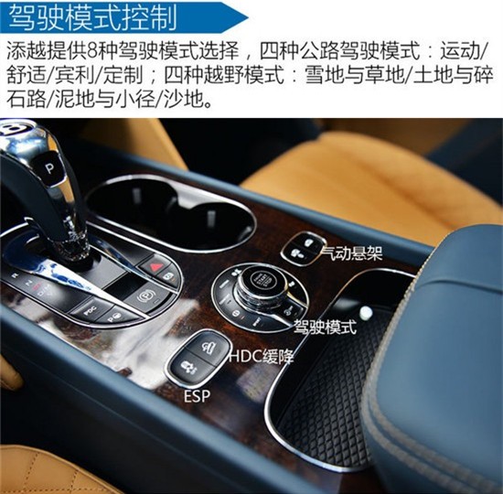 W12之所以称之为W12,那种大排量多缸发动机带来的气势和稳重感是V8车型不具备的。轻踩油门,W12发动机工作于无形,无论是声音和振动,宾利都会给你很好地隔绝在车舱外。W12发动机驱动宾利添越 (配置|询价)时就像是稳步向前推进,运转非常平稳,声线非常纯,非常绅士的感觉,作为一款宾利的SUV,这种发动机所带来的气势感非常到位,符合其身份。