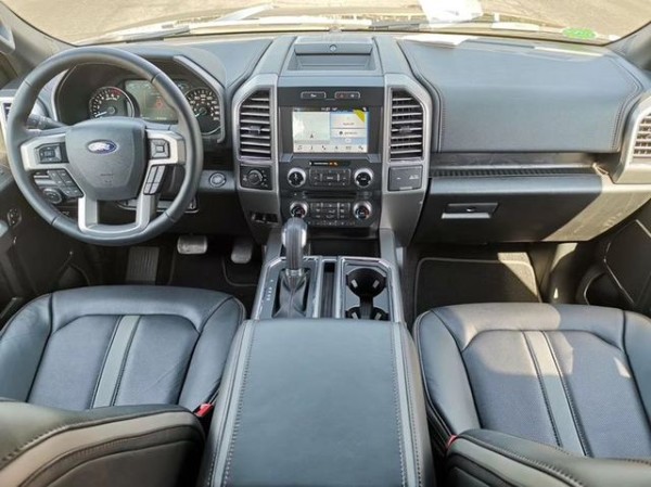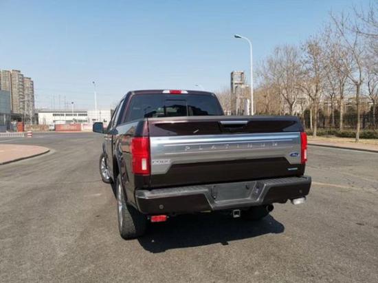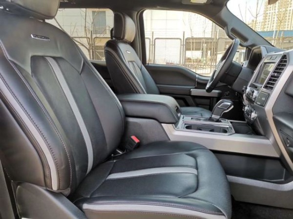 福特F150血统纯正,拥有了无与伦比的车身刚度,整体车身肌肉感十足,威慑力表现的淋漓尽致。巨大的长方体蜂窝式格栅中间镶嵌着福特的大标,再加上全新设计的保险杠和发动机舱盖,使车头拥有了震撼的冲击感。车头给人一种很凌厉的气势,简约的线条勾勒出大而气派的感觉。