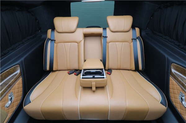 后车厢配置两张航空按摩座椅,缝线精致,更拥有超长腿托,多向调节、电动按摩、座椅加热通风等功能。奔驰V260L新款定制版座椅完美按照人体工设计,让你享受最合理自然的坐姿。第三排豪华三连坐电动沙发座椅在车内人员困乏时可以一键躺平成双人床,为出行提供温暖舒适的休息。