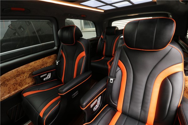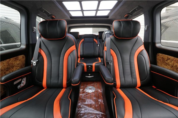 这款进口奔驰7座商务车Metris的车舱内饰经过改装,为了满足更高的商务出行要求,车内全部精选皮革包覆,配色典雅,手感细腻。进入它的后舱,空间上一点都不会觉得局促,配置了两张宽大航空头等舱座椅,乘坐的舒适度与原型车相比大大提升。