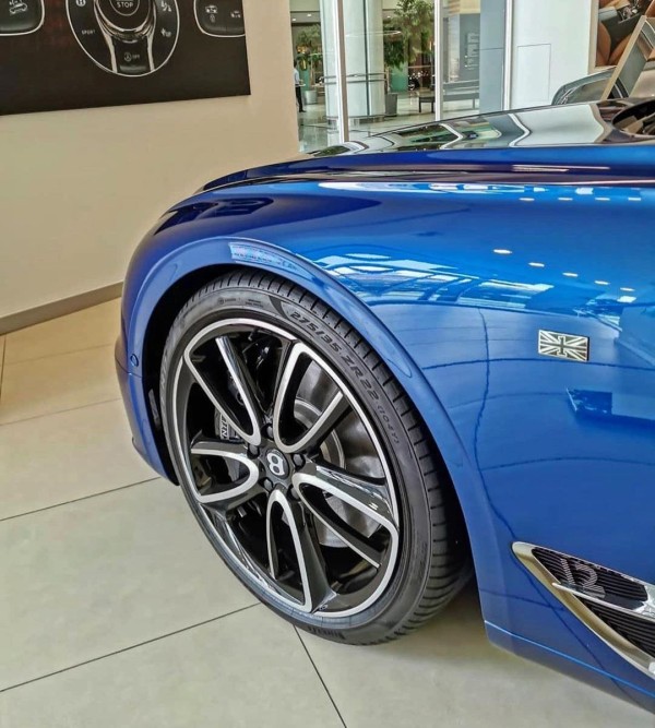 20款宾利欧陆GT全系将标配21英寸轮毂,并提供两种不同造型,也可选择22英寸轻量化锻造轮毂,侧翼子板处有个小的通风口,附有“12”的字样;DBS搭配21英寸“Y”字型轮毂,在前轮拱上有超级夸张的通风口,可以有效地为前刹车散热,下方还有DBS的标识,性能范十足。