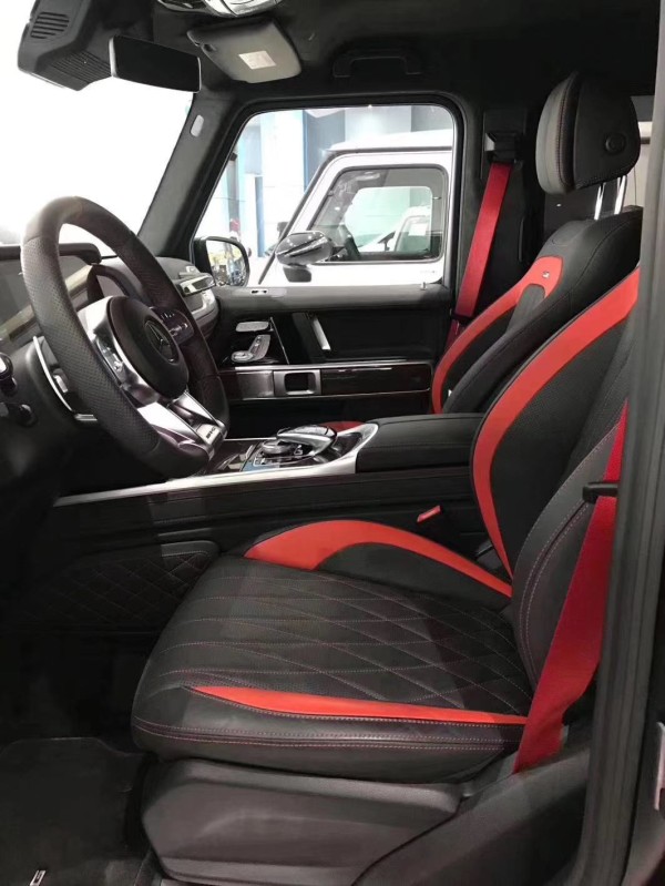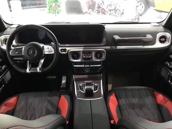 19款全新G63内饰方面,新G63保留了新G500的整体设计,除配色差异外,新车还换装了全新造型的平底式AMG运动方向盘,其两侧配以打孔皮质包裹,下部镀铬装饰的造型也与新G 500明显不同,看上去十分战斗。此外,全液晶仪表盘+中控大屏的双12.3英寸屏幕设计在新车上也没有缺席,营造出了浓郁的科技感。内饰更加豪华气派,卓越的品质和精致的工艺在车内体现得淋漓尽致,对细节的精益求精是内饰设计中的重要原则。