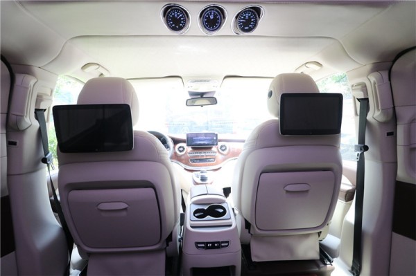 新款国六奔驰商务车VS680平顶无隔断设计,双侧电动滑门,闭合声音清脆,还可通过中控台按键多种方式自由操控,新款国六奔驰商务车VS680为您量身定制VIP专属步入感。实用配置方面有前后对讲系统,隐藏式的小桌板,杯架等等。整车采用7座的座椅布局,前后舱采用无隔断设计,正副驾驶座位后方采用了两台12.8寸的液晶显示屏,给您舒适与娱乐相结合的享受。