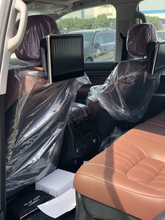 2019款丰田酷路泽5700车内乘坐、载物空间均极为优秀。新车型在屏幕色彩和界面设计上,基本都向新的雷克萨斯LX (配置|询价)看齐。大量泛金属光泽饰条的采用,大大增强了运动感和时尚感。车内8个座椅均为真皮打造,第一排座椅:电动、可调节;第二排座椅:带头枕、可折叠、中央扶手。