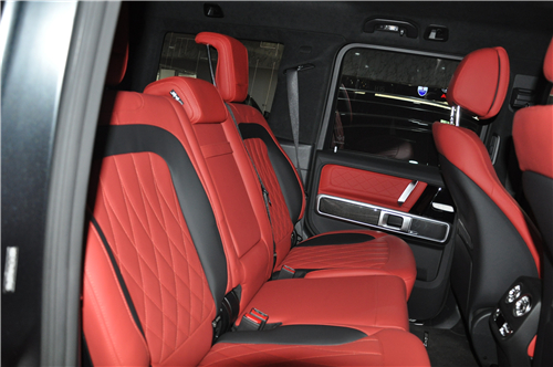 奔驰G63换上了奔驰最新家族式的内饰设计,这无疑让G级 (配置|询价)拥有了旗舰级应有的豪华感,不过经典的副驾驶席扶手和三把锁的开关键依旧延续了经典设计,并设置在中控台最显眼的位置。其中双12.3英寸高清屏,虚拟仪表盘与中控液晶屏融为一体,视觉上形成一个宽屏驾驶舱,中部的涡扇式空调出风口也颇具设计感,还大量采用了皮革的包覆。另外,新一代G级还对驾乘空间也进行了优化。