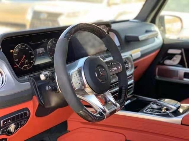 2019款全新G63内饰方面,新G63保留了新G500的整体设计,除配色差异外,新车还换装了全新造型的平底式AMG运动方向盘,其两侧配以打孔皮质包裹,下部镀铬装饰的造型也与新G 500明显不同,看上去十分战斗。此外,全液晶仪表盘+中控大屏的双12.3英寸屏幕设计在新车上也没有缺席,营造出了浓郁的科技感。新G63保留了新G500的整体设计,除配色差异外,新车还换装了全新造型的平底式AMG运动方向盘,其两侧配以打孔皮质包裹,下部镀铬装饰的造型也与新G 500明显不同,看上去十分战斗。此外,全液晶仪表盘+中控大屏的双12.3英寸屏幕设计在新车上也没有缺席,营造出了浓郁的科技感。