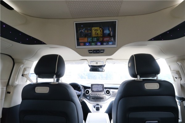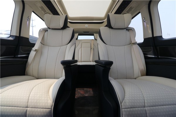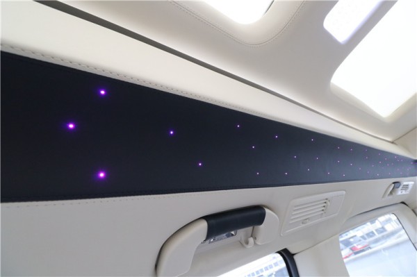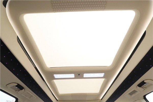 比较令人豁然开朗的是,这款国六七座奔驰商务车采用全景天窗的设计,还带有电动遮阳的功能,它的格局很大,两侧的氛围星光灯闪烁其中,非常耐看。