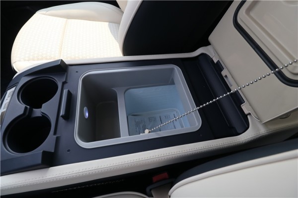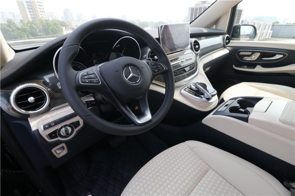 这款国六七座奔驰商务车的驾驶舱采用打孔真皮包裹,布局非常简约大气,没有太多物理按键,和大众那种驾驶舱风格相比,还是走的非常时尚前卫,尤其是素雅的配色会比较讨老板的喜欢。虽然像这种偏高端的商务车一般都会有司机,但是如果哪天司机不在,老板自己也挺愿意开出去和朋友玩,配置的恒温车载冰箱还是蛮实用的。