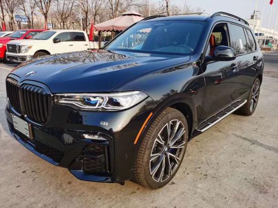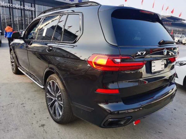 宝马X7 (配置|询价)外观高度还原X7iPerformance概念车设计语言,前脸配备硕大的双肾进气格栅,“天使眼”大灯组造型极为修长且采用开眼角设计,内部配备激光光源,最大照射范围可达600米。前保险杠中央为ACC自适应巡航传感器,两侧LED雾灯组与通风口融为一体,疏导气流的同时还可以为刹车系统进行散热。