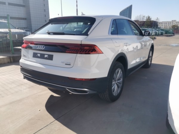 19款奥迪Q8 (配置|询价)的车身侧面不像同级德系竞品那般过于注重溜背感,两段式腰线配合内凹车门,勾勒出干劲有力的整体形象。奥迪Q8长宽高分别为4986/1995/1705mm,轴距2987mmmm。和奥迪Q7 (配置|询价)相比,奥迪Q8车长缩短了100mm,车高降低了11mm,而轴距也缩减了14mm。虽然尺寸变化不大,但明显营造了不同的风格。