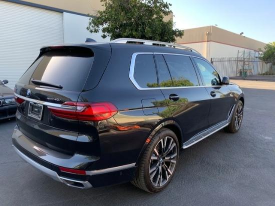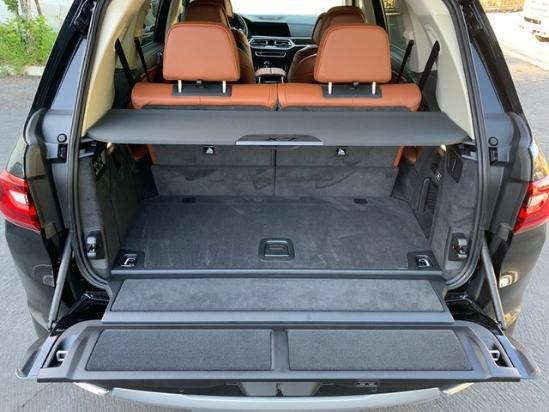 宝马X7的尾部后备箱采用上下对开的开门方式,贯穿式的尾灯配合一整根镀铬装饰条,符合当下的潮流,车尾部的线条设计也非常丰富,排气采用了双边单出的设计,处处都彰显着大气两个字。全新宝马X7车身尺寸为:长:宽:高:5151:2000:1805 轴距:3105轮胎方面:全新宝马X7标配20英寸轮毂,21以及22英寸轮毂属于选配件。22寸轮毂规格为:275/40 R22。