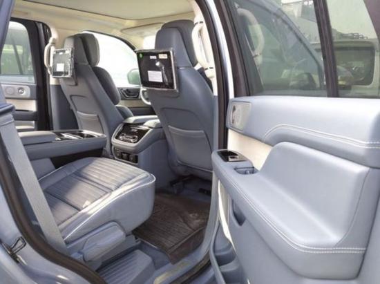 19款林肯领航员 (配置|询价)3.5TT 7座精雕细琢的内饰, 结合了美国胡桃木和高级真皮材料、丝光镍饰件与白色发光二极管等组合一起,营造出一个豪华、浪漫而又极具现代感的车内环境。方向盘和轿车一样的轻盈,周身散发出来的尊贵气息,让人肃然起敬。