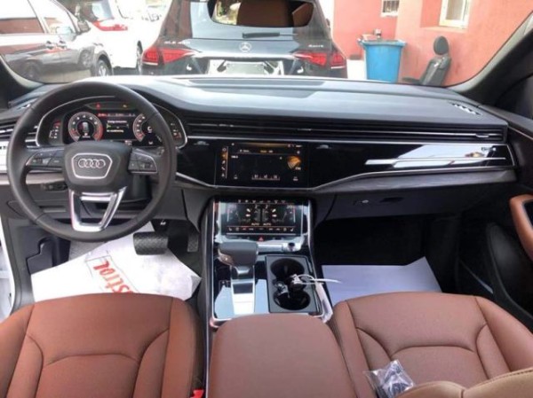 进入车厢内部,会感觉奥迪Q8和全新A8的设计高度雷同。奥迪全新家族化设计,科技感十足的虚拟驾驶舱氛围,同样的三块大屏,横向贯穿的前排空调出风口。中控台采用大面积的真皮包覆,且向驾驶员一侧倾斜,形成以驾驶员为中心的驾驶舱。整个中控采用了全触屏来对车辆进行操控,没有一个实体按键,对技术要求极高,非常的高大上。科技感十足