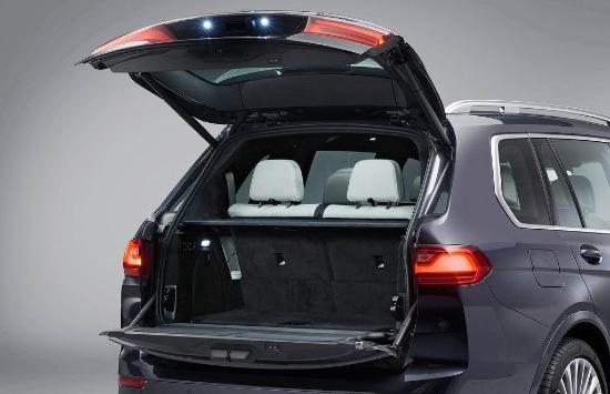 宝马X7的尾部后备箱采用上下对开的开门方式,贯穿式的尾灯配合一整根镀铬装饰条,符合当下的潮流,车尾部的线条设计也非常丰富,排气采用了双边单出的设计,处处都彰显着大气两个字。