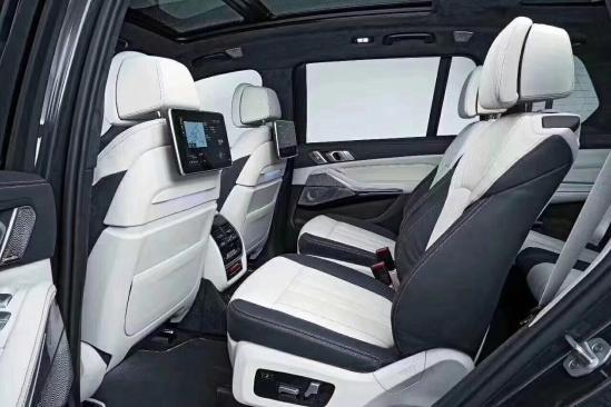 座椅方面:X7标配7座座椅,2+3+2的布局,中间两个独立座椅是选装件,在功能方面,全车座椅标配座椅加热,前排座椅可选装通风和按摩。第三排座椅也是电动 调节。