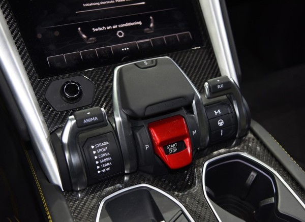 2019款兰博基尼UrusTamburo驾驶动态选择器位于中控台,可对全车的动态系统进行控制,根据驾驶者偏好和路面状况切换驾驶动态:STRADA (道路)、SPORT(运动)和CORSA(赛道)模式,以及新增设的NEVE(雪地)模式。同时,可选装两种越野模式:TERRA (越野)和SABBIA(沙地)。