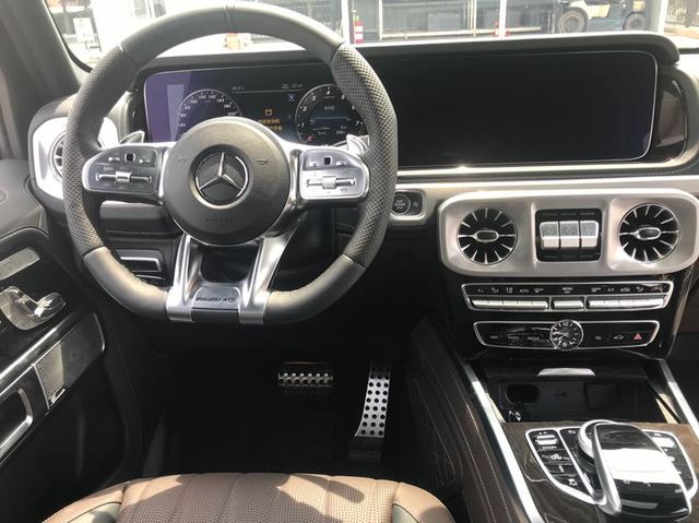 奔驰G63则使用5.5T V8引擎,AMG调校,最大功率585马力,最大扭矩850牛·米(老款为570马力和760牛·米),0-100km/h驾驶4.4秒,比老款快0.9秒,最高速度也由210km/h提高到了240km/h。AMG改装G63还可提供侧向排气管等更个性化的选装。新车还配备双边共四出排气系统(后门下方),排气管采用高光镀铬,可迸发出典型的AMG V8音色。