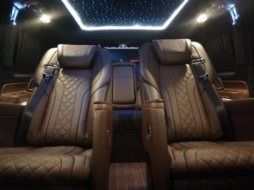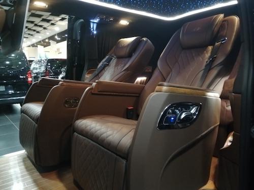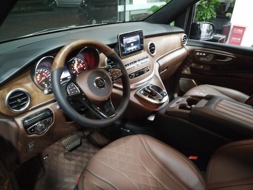 2019款V250改装商务房车十周年限量版,原装进口,车辆内饰亮点名称,全车是按巴洛克风格设计,车辆板材和地板用的是东南亚进口胡桃木全车用到了25处,优点是耐磨,本身散发香气,地板生产工艺打磨要打7-8编,抛光也要抛7-9编,从而才能形成这个亮度。座椅用的是非洲肯尼亚鸵鸟皮,优点拉伸度好,是牛皮3-5倍,耐磨度也非常好,真皮用的是意大利NAPA小牛皮,顶部用的是意大利阿尔坎塔拉材质。内饰脚踏是电动调节。