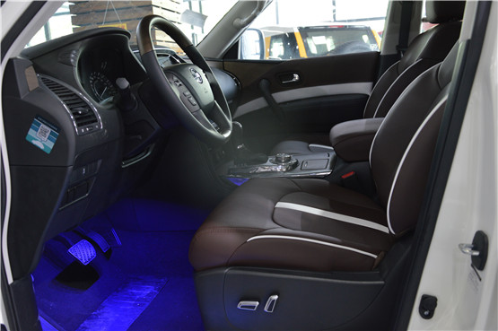 19款中东版尼桑途乐4.0XE 内饰兼具了舒适性和功能性,仍然为三排座车型,营造出了轻松惬意的驾驶环境。多功能方向盘粗细比较合手再加上真皮加实木的用料,手握感觉极佳,另外方向盘功能强大,集成了音响、空调控制及蓝牙车载免提系统。