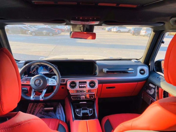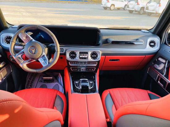 全新G63内饰方面,新G63保留了新G500的整体设计,除配色差异外,新车还换装了全新造型的平底式AMG运动方向盘,其两侧配以打孔皮质包裹,下部镀铬装饰的造型也与新G 500明显不同,看上去十分战斗。此外,全液晶仪表盘+中控大屏的双12.3英寸屏幕设计在新车上也没有缺席,营造出了浓郁的科技感。