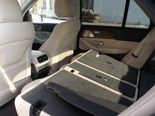 2020款奔驰GLE350车型装备了两段式式全景天窗,开启面积较为可观,座椅造型相比老款更为运动,两侧的护翼有明显的加大。车内采用2 3 2七座布局,第二排座椅造型宽大厚实,支持前后和靠背角度调节,前后调节距离达100mm,地板中间有轻微突起,得益于较长的纵向空间,对中间乘客影响不大。
