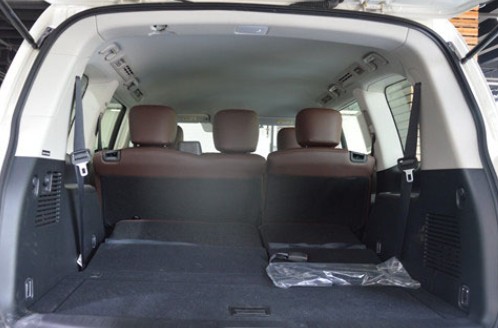 2019款日产途乐中东版3075mm的超长轴距与任何同级竞品相比都丝毫不吃亏,与此同时换来了相当充裕的车内空间,二三二的座椅布局以及合理的车内空间优化,都让这个大块头有了非常可观的肚量。此外,电动的第三排座椅放倒和尾门也很显档次。值得一提的是,车内第二排的地板非常平坦,即使坐满三人,中间的人也不会感觉到丝毫的不适。储物空间方面,丰富多变的储物格极大程度的满足了车内物品的存放需求,550-1490L的超大后备厢空间足够日常的使用了。