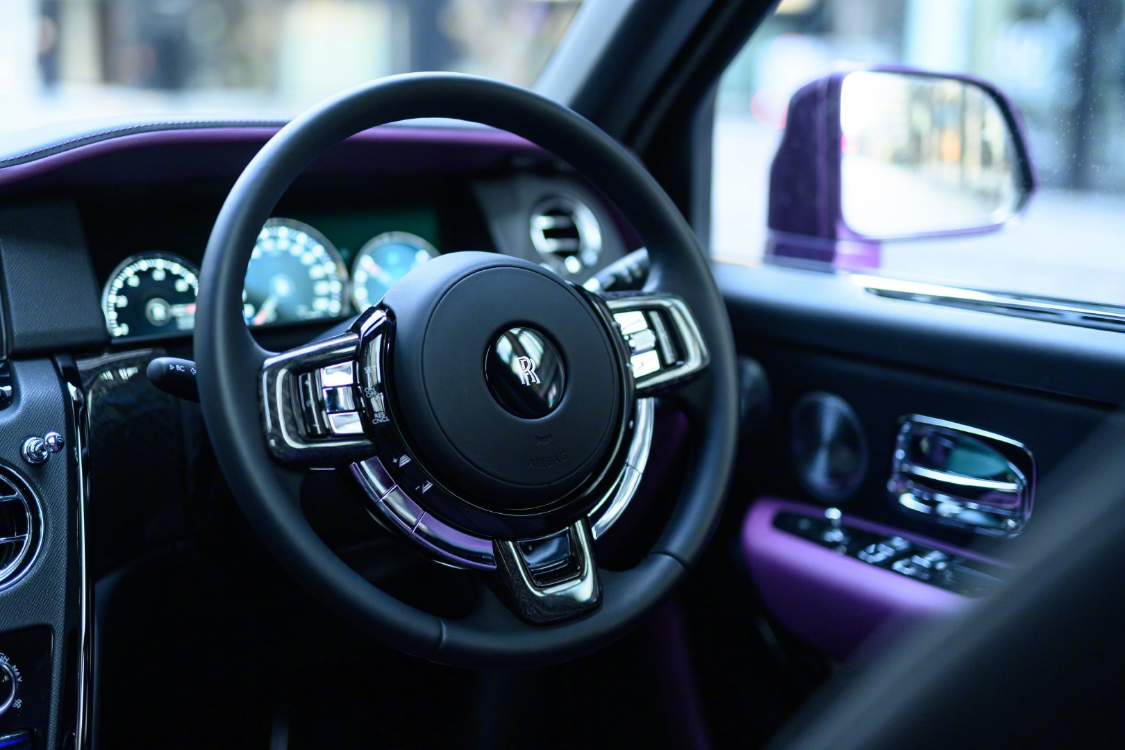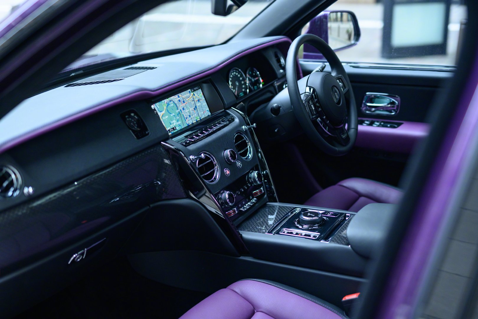 劳斯莱斯库里南的内饰延续了全新幻影的设计风格,整体用料依旧一如既往的奢华高贵,中控采用大面积实木打造,配合方向盘上的实木点缀,既复古又豪华。中控屏幕尺寸为10.2英寸的屏幕,轻触车门把手上按键就可以电动关闭。