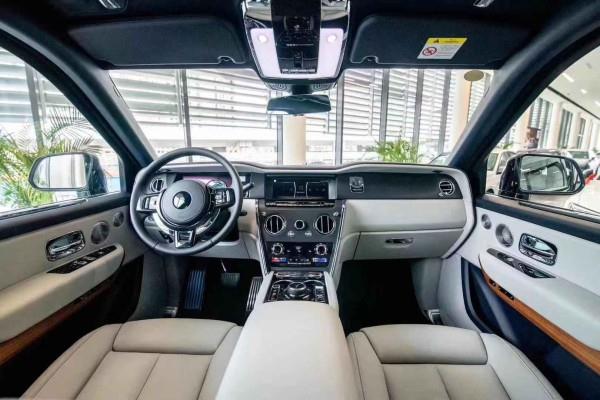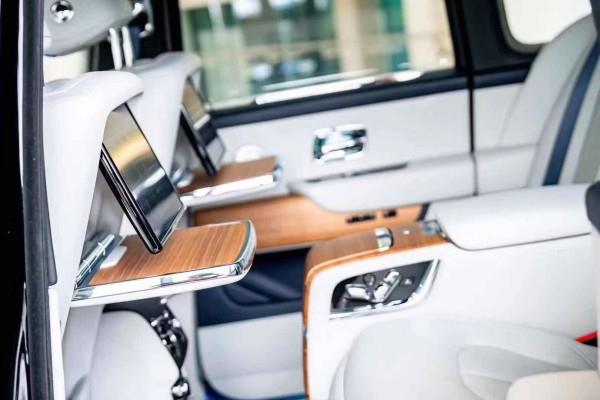 库里南的内饰遵循了劳斯莱斯一贯的设计风格。它既经典又复古,但有科技感。大量实木贴面的使用提高了室内的质量。大面积真皮包裹设计成功营造豪华舒适的室内氛围。仪表板设计简单,内部指针清晰可见,外环还配有劳斯莱斯珠宝般的装饰环。方向盘沿用了经典的三辐设计,但整体设计更小更厚,内饰包裹着可以加热的柔软材料。