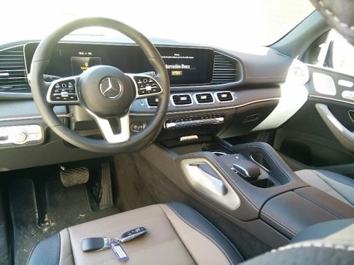20款奔驰GLE450延续了现款的造型,用的是贯穿式中控台双屏设计,12.3英寸的双液晶显示屏带来的科技感爆强,并且搭载了奔驰最新的MBUX人机交互系统,采用搪塑,皮革,实木,金属和碳纤维材质,三幅式平底方向盘动感十足,让人有一种飞翔的感觉 。全景天窗。