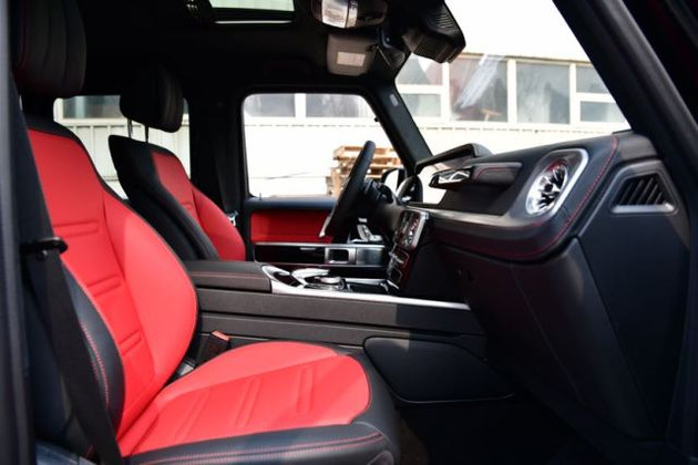 2019款奔驰G (配置|询价)550车头部份特别换上了碳纤维材质的单横栅式水箱护罩,并在两侧进气孔下方则追加了LED昼型灯,展现出更为华丽的车头造型。而引擎盖上 方追加了大面积轻量化碳纤维材质组件,并在两侧追加了同为碳纤材质的空力套件,搭配车身大型轮拱同样碳纤维材质的设定,并刻意透出半截碳纤维材质的迷人纹路,让奔驰G550的外观更显凶悍。