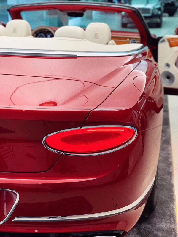 20款宾利欧陆GT敞篷版侧面车身上极具流线型的设计风格一览无余!而且新车还采用了类似于复古的设计风格,视觉上的冲击更加强烈。尾部上这部车采用了更加圆润的设计风格,椭圆形的尾灯与排气管的形状保持了一致。