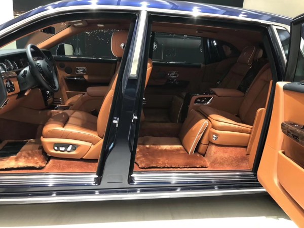 19款劳斯莱斯幻影加长版,4门4座版本 6.7T,V12,571匹马力,8速手自一体,双涡轮增压,长*宽*高5990*2018*1656,轴距3772。整车4年不限公里质保及保养 黑色车身彰显尊贵的身份,时下最流行的爱马仕橘色缝线搭配曜石黑内饰,绝无仅有的搭配。通过对铝的完美使用,庞大的车身控制在2745KG重,并采用全新的N74B68A双涡轮增压6.7T V12发动机,最大功率420KW,在1700转下就可以发挥最大扭矩900NM,与八速手自一体变速箱的的通力合作,使新幻影0-100Km/h的加速仅为5.4秒。