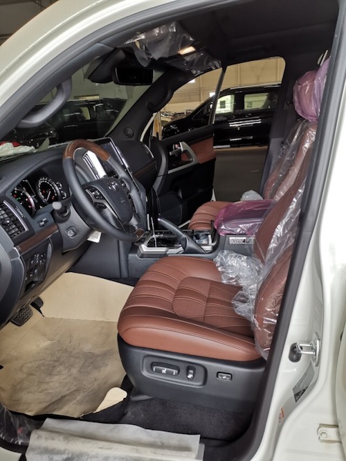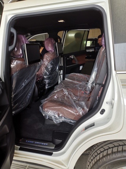 19款丰田酷路泽配置:通体黑内顶,雷测,底盘升降,12气囊,蠕行,遥启,天窗,LED氙灯,冰箱,桃木真皮多功能方向盘,彩条,20 轮,环车影像,真皮刺绣电动座椅,前排座椅通风,8速,电动后备箱门(油箱138L),10寸屏幕导航,JBL音响14扬声器,雷克萨斯原厂后娱,酷路泽地射logo镭射灯,踏板灯,四门迎宾灯,全地形全时四驱,四区自动空调,一键启动,无线门锁,智能卡,中控锁,自动感应雨刷,大灯清洗装置,电动折叠后视镜,侧脚踏,前、后雾灯,自动远光灯,防擦板照明,制动防抱系统,刹车辅助,自适应悬架系统(AVS),车辆稳定性控制系统(VSC), 盲点监测(BSD),倒车后视辅助(RCTA),预碰撞安全系统(PCS),车道偏离警报(LDA),上坡辅助(HAC), 胎压监测,扰流尾翼,拖钩,全车镀铬,电尾门。