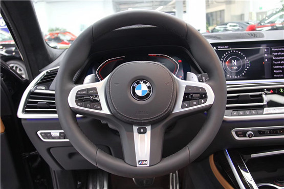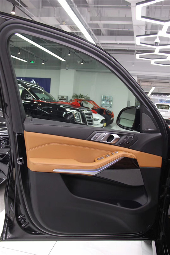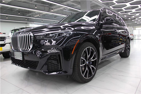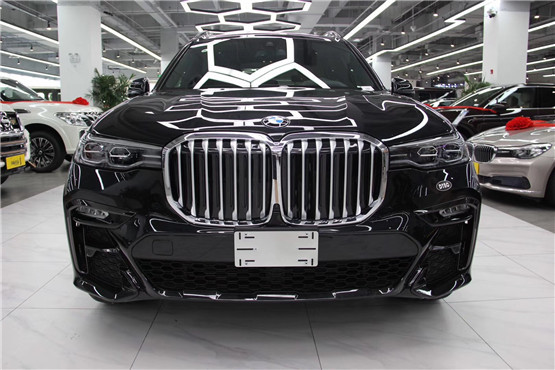 宝马X7 (配置|询价)外观高度还原X7iPerformance概念车设计语言,前脸配备硕大的双肾进气格栅,“天使眼”大灯组造型极为修长且采用开眼角设计,内部配备激光光源,最大照射范围可达600米。前保险杠中央为ACC自适应巡航传感器,两侧LED雾灯组与通风口融为一体,疏导气流的同时还可以为刹车系统进行散热。