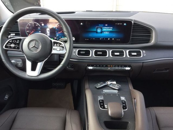 20款奔驰GLE450加版用的是贯穿式中控台双屏设计,12.3英寸的双液晶显示屏带来的科技感爆强,并且搭载了奔驰最新的MBUX人机交互系统,采用搪塑,皮革,实木,金属和碳纤维材质,三幅式平底方向盘动感十足,头顶一个全景天窗,座椅用的是双色搭配的动风格座椅,舒适性和包裹性也比较好。