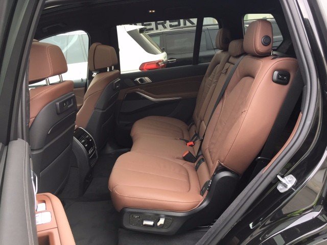 2019款宝马X7标配7座,232、222布局。中间两个独立的座位是可选的。功能方面,全车座椅均标配座椅加热,前排座椅可通风按摩。第三排座椅也可电动调节。后部娱乐系统也是可选的。除了屏幕,后排娱乐系统还包括蓝牙DVD、两套独立耳机和HDMI接口。此外,X7还有两个USB分别为第二排和第三排充电。四轮驱动自动空调是X7的标准配置,可以选择五区空调,让第三排乘客可以自行调节温度,非常周到。此外,新款宝马X7还配备了8款可选的香水系统。