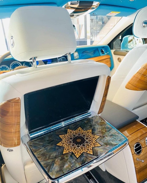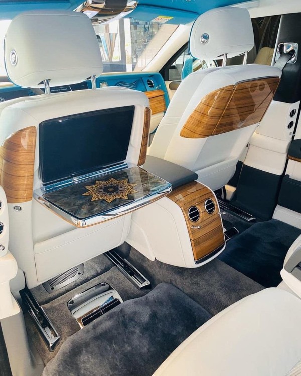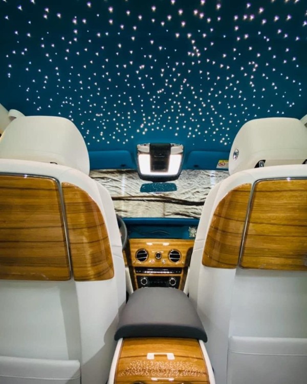 劳斯莱斯全新幻影电动折叠板和后排影院系统被巧妙的隐藏在前排座椅的椅背后,只需轻触按钮,便可以自如收放桌板和影院系统,带来完美的剧院体验。后排中央固定扶手做了重点优化,其中国可容纳带有威士忌酒具的酒柜、香槟酒具和冷藏箱,方便乘客畅快交谈,后排座椅角度可以任意调节,这一设计让客户无需转头便可视线自如交流。举世闻名的星光饰顶抬头可见,整个车厢内饰全部以最精美的高档材料装饰,使车内极具触感。