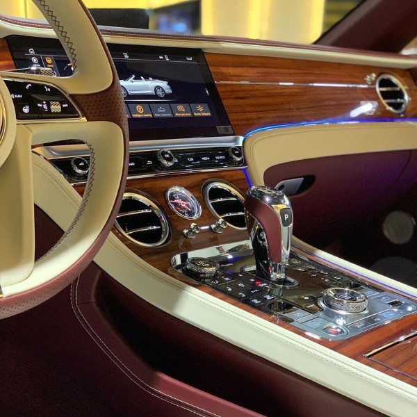 驾驶和副驾驶位置四周采用连续环绕式手工饰面,从仪表板向两侧延伸到车门。车内特色设计与车身外部线条交相辉映,使敞篷状态下的整体造型更加精美流畅、浑然一体。从双色饰面和菱形滚花设计,到令人惊叹的宾利三面翻转中控面板,全新欧陆 GT 敞篷版内饰诠释了英伦超豪华汽车的精湛手工技艺。