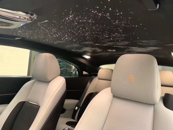 劳斯莱斯-魅影内部最大的亮点在于星空饰顶,“繁星”由1340条光导纤维组成,原理不难理解,包括这繁星点点也都是纯手工制作而成。在车内您可以尽情的享受浪漫,温馨的氛围。