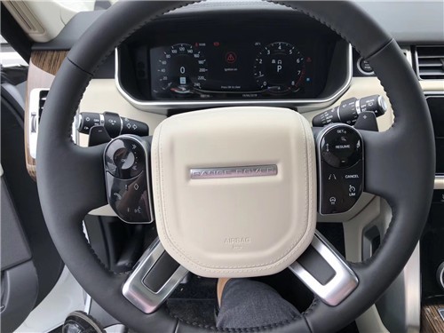 19款路虎揽胜行政版方向盘也非常的现代,实木与真皮的材质,也让奢华感升温不少,上面有音响,蓝牙的控制区和自适应巡航,方向盘加热控制区,操作非常方便。内饰均采用精心设计及精湛工艺,并选用最为顶级的皮革及材质,仪表板、手套箱盖、中央通风口四周、车门内饰板和方向盘后均采用全真皮包裹,甚至驾驶者的膝部气囊的外层也同样采用了真皮装饰。