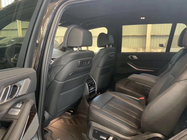 全新宝马X7 (配置|询价)不仅延续了宝马家族式的设计,也添加了不少全新的设计,车头宽大厚重,前脸标志性双肾型进气格栅做了加大处理,直瀑瀑型中网周围包裹宽大的饰条,不仅辨识度高攻击力也是非常强的,两侧连接大灯组,外观做了开眼角处理,上下两条LED日间行驶灯做了上下眼眉。
