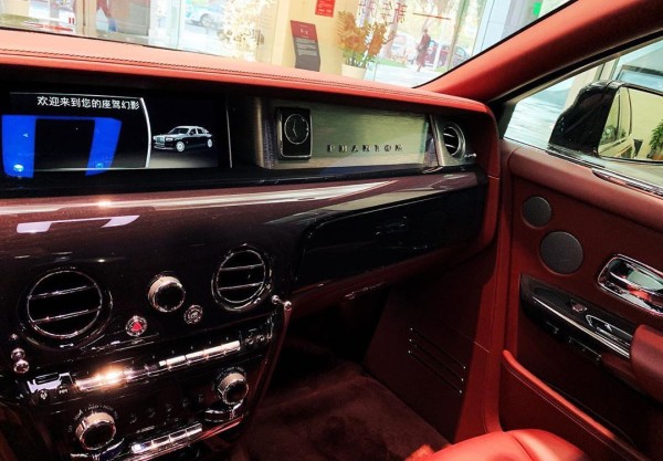 全新幻影内饰的改变更为显著。新车首次用一块12.3英寸的液晶仪表替代此前的传统机械式仪表盘,同时也使用了更加现代化的中控人机交互系统,该系统的屏幕可在不用时收起。“艺境藏珍”画廊是全新幻影内饰中增添的最新设计元素,画廊内所有装饰都被一整块钢化玻璃密封,视觉效果美轮美奂。而用户可以对画廊内的装饰、钟表盘以及使用的材质等进行订制。劳斯莱斯幻影车内采用的皮革隐隐地散发着牛的气味,在幻影车上,公众还能看到最高水准的手艺和最优质的材料。