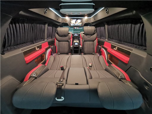 后排座椅支持180度平躺;为您的长途出行打造临时床铺奔驰V260L商务车高顶无隔断系列,七座车型的第三排沙发,支持一键放平或者收起,随时为您的长途出行打造足够宽敞舒适的卧铺,简约时尚的氛围灯与豪华柚木地板交相辉映,是对精致移动生活的皮质追求!