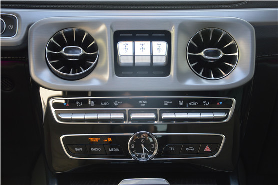 19款奔驰G500的内饰豪华气派,卓越的品质和精致的工艺在车内体现得淋漓尽致,对细节的精益求精是内饰设计中的重要原则。车内采用深色调与桃木装饰,黑色真皮运动座椅非常舒适,方向盘以高档真皮包裹装饰,触感极其细腻。配有桃木装饰的操控台,稳重大气,同时提高了整体的质感。各种功能按钮应有尽有,丝毫不次于豪华轿车的功能;后排空间非常宽敞,且后排的座椅可以折叠,以得到更宽敞的储物空间