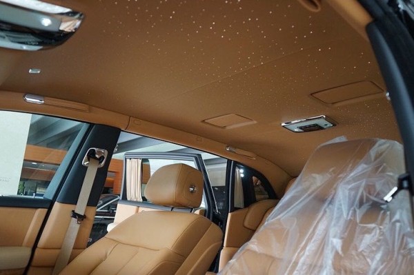 劳斯莱斯全新幻影电动折叠板和后排影院系统被巧妙的隐藏在前排座椅的椅背后,只需轻触按钮,便可以自如收放桌板和影院系统,带来完美的剧院体验。后排中央固定扶手做了重点优化,其中国可容纳带有威士忌酒具的酒柜、香槟酒具和冷藏箱,方便乘客畅快交谈,后排座椅角度可以任意调节,这一设计让客户无需转头便可视线自如交流。举世闻名的星光饰顶抬头可见,整个车厢内饰全部以最精美的高档材料装饰,使车内极具触感。